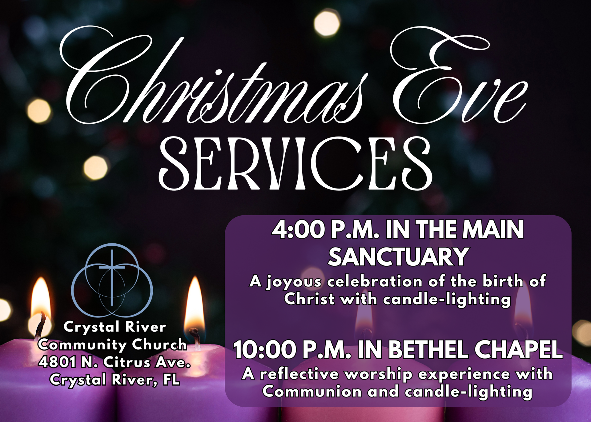 We invite you to join us at Crystal River Community Church. No matter where you are on your faith journey, we welcome you with open arms. Come and experience the love and grace of Jesus Christ with us. If you have any questions about our church or services, please get in touch with us at 352-795-3148.